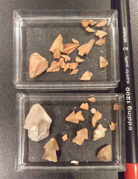 Rafael Luna Leiva Detalle del dique neptúnico del arroyo de Jarcas en el que se aprecia la caliza roja incrustada entre la caliza granulada u oolítica. (Ver foto de Rafael Luna Leiva).