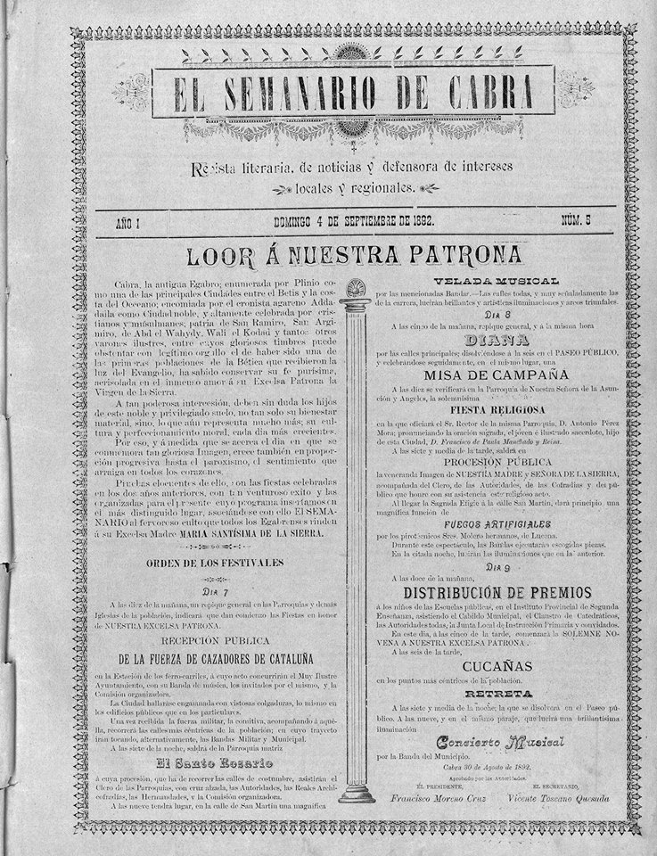 -Rafael Luna Leiva Muchas gracias, Pepe Garrido Ortega, por esta iniciativa tuya de abrir una nueva sección, en este caso, sobre la prensa local, uno de nuestros tesoros más importantes y, a veces, más desconocidos. Me alegro reencontrarme con este facsímil del primer periódico de Cabra.